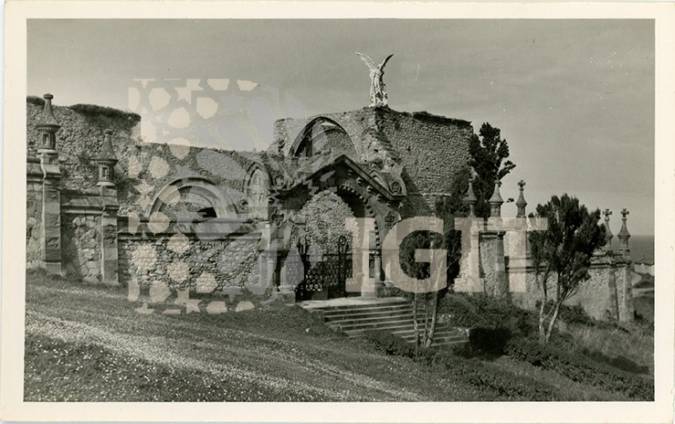 - Fotografía en formato tarjeta postal del cementerio, enclavado en las ruinas de la antigua iglesia de Comillas.