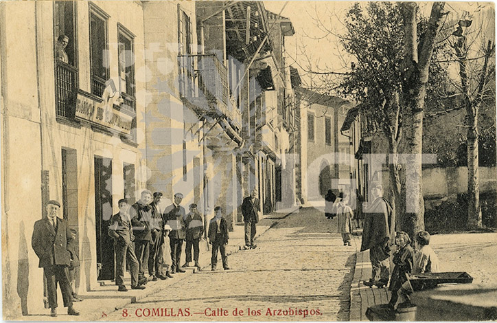 - Fotografía en formato tarjeta postal con una vista de la calle de los Arzobispos, una de las principales de la villa.