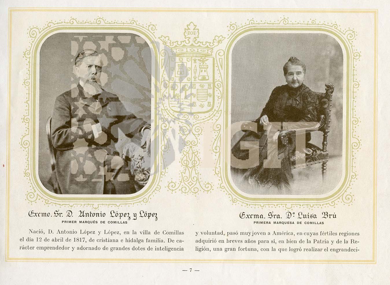 - Publicación con los retratos fotográficos de Antonio López y López, primer marqués de Comillas, y de su esposa, M.ª Luisa Bru