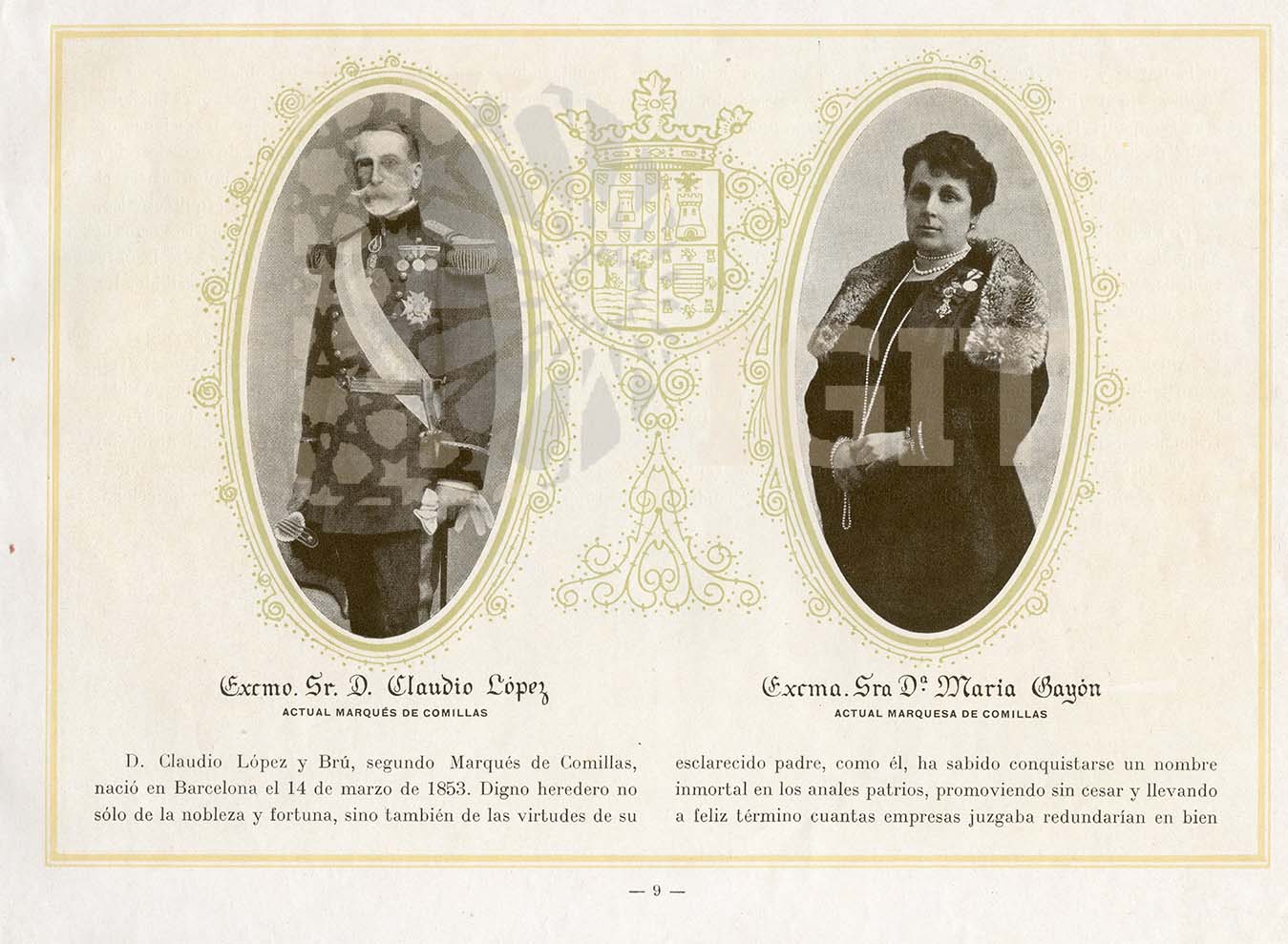 - Publicación con los retratos fotográficos de Claudio López Bru, segundo marqués de Comillas, y de su esposa, María Gayón.