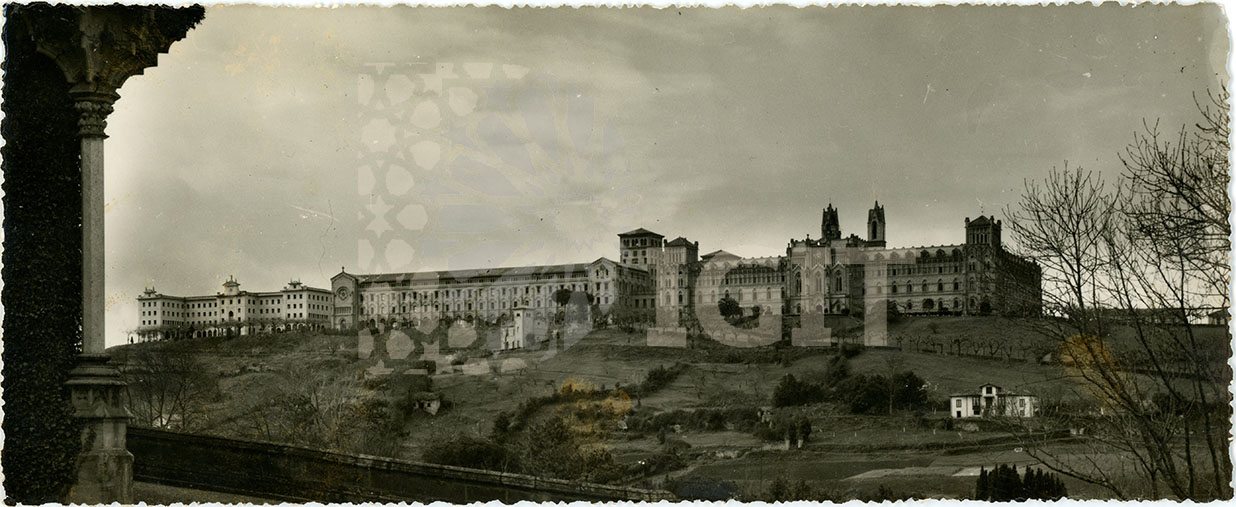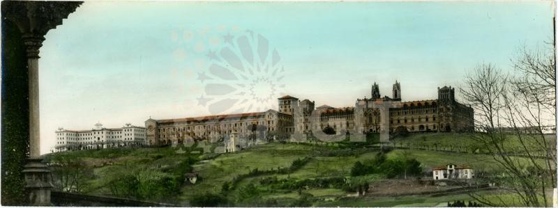 Comillas (Cantabria). Vista general del Seminario Mayor, Seminario Menor y Colegio Máximo edificados en la colina de La Cardosa.