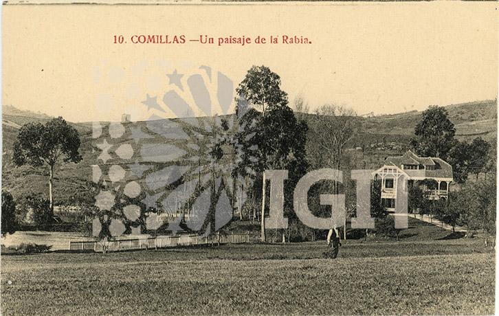 Fotografía en formato tarjeta postal de la Casa de Gerramolino en la Rabia, construida por el industrial minero James Pontifex Woods, a su muerte fue adquirida por la familia Güell.